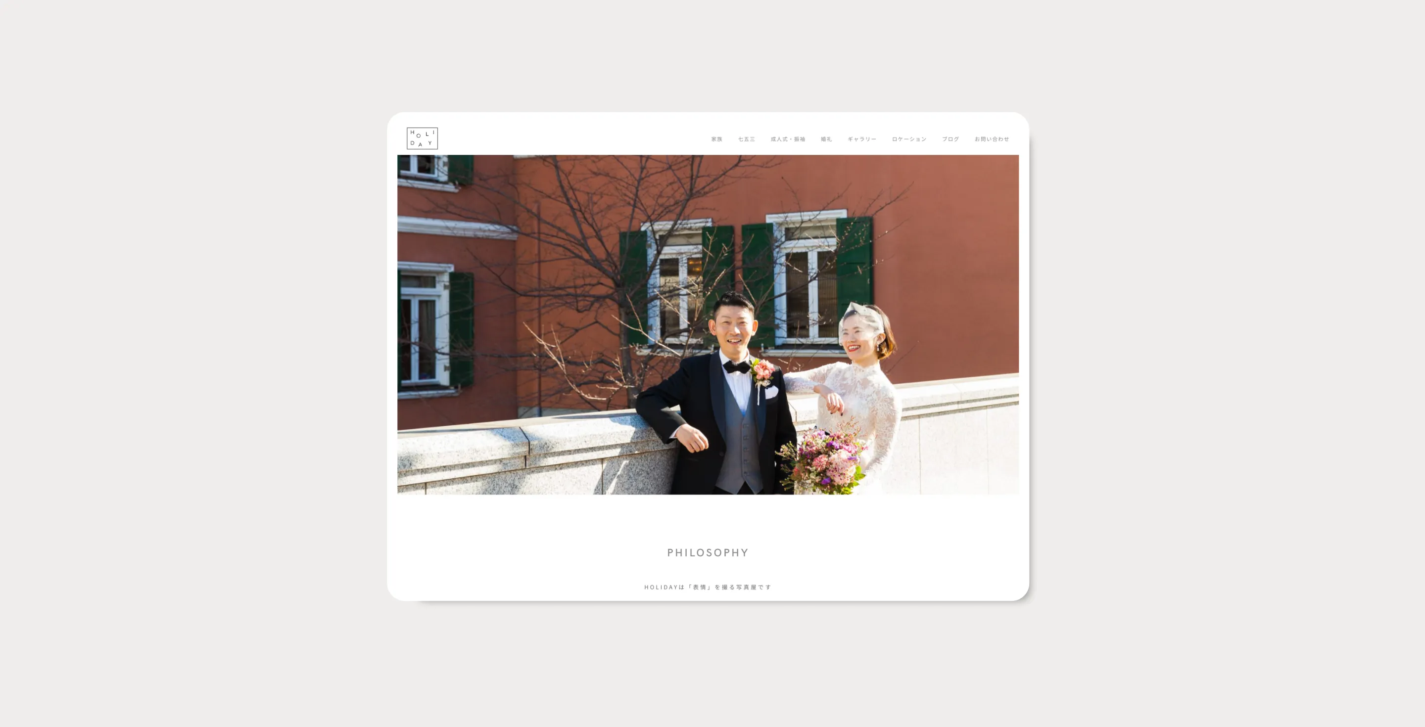 ロゴデザインからWebサイトまで、HOLIDAY様のブランド全体を一貫して制作しました。 「表情を撮る写真屋」というコンセプトを軸に、写真そのものの魅力が自然に伝わるよう、余白を活かしたシンプルなレイアウトで構成。やわら […]